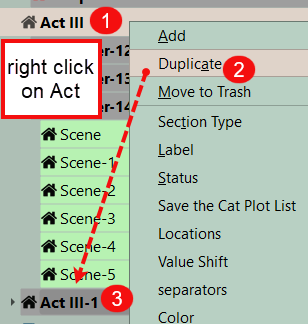 and the part/Act you add can be moved in the binder. or you can duplicate and move the copy in the binder as below.