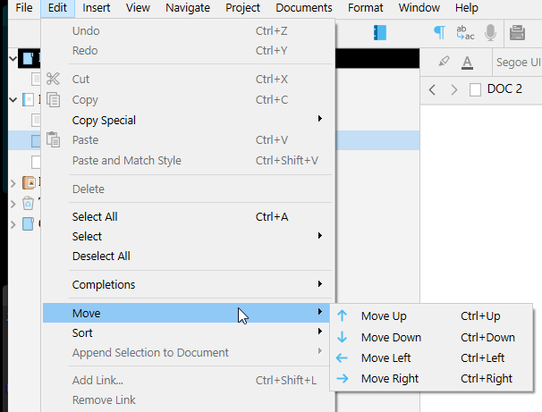 The indentation of the folder can be updated via the Context menu, a keyboard shortcut or through icons place on the Main Toolbar.