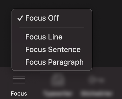 I was able to do a search under HELP for focus and eventually found it. It seems as though it is View> Text Editing >Focus. I didn’t see a “Layout” choice. I’m on a Mac.