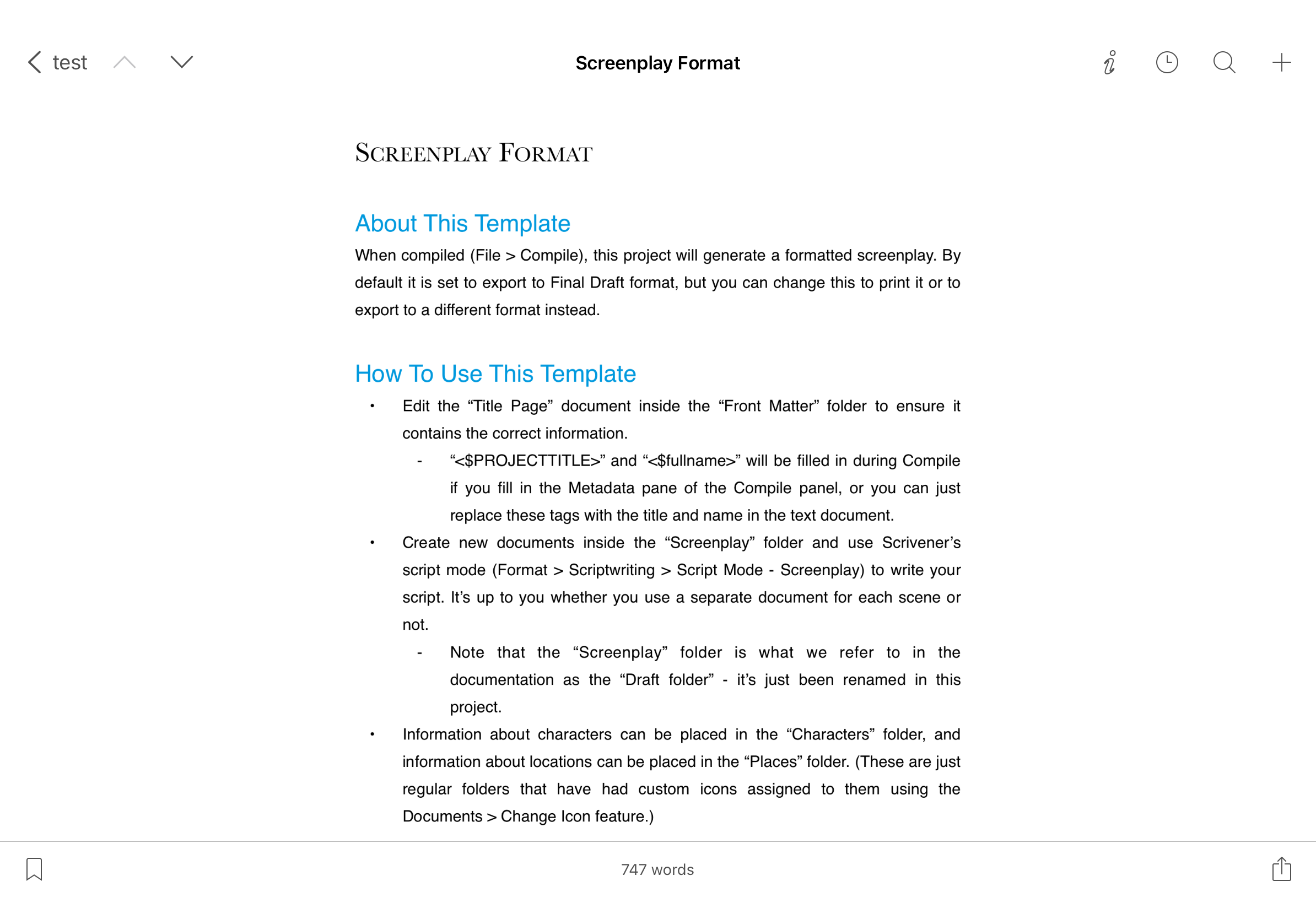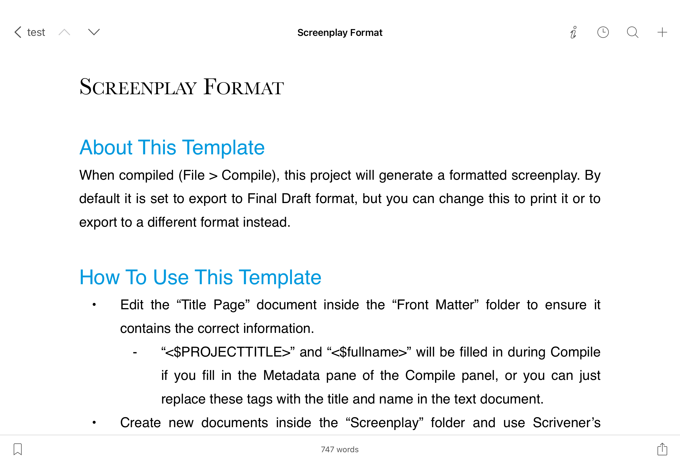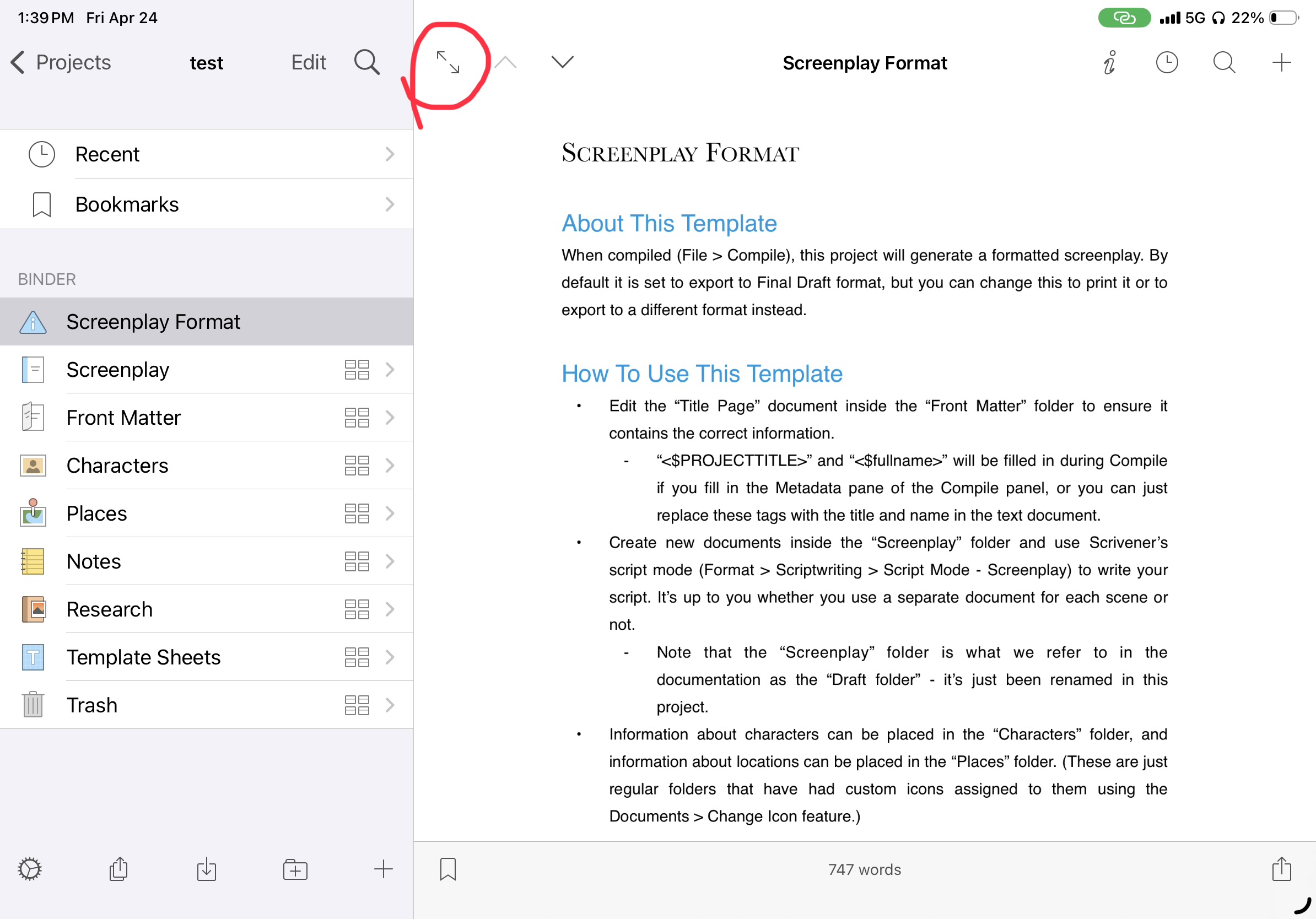 In Scrivener iPad/iPhone, synchronize and open the project.