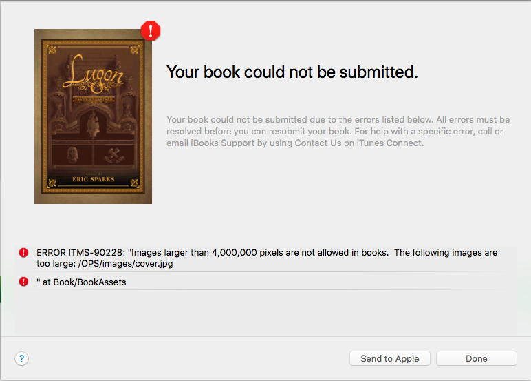 Take same .epub to Apple to put up in their bookstore. PROBLEMS!!!