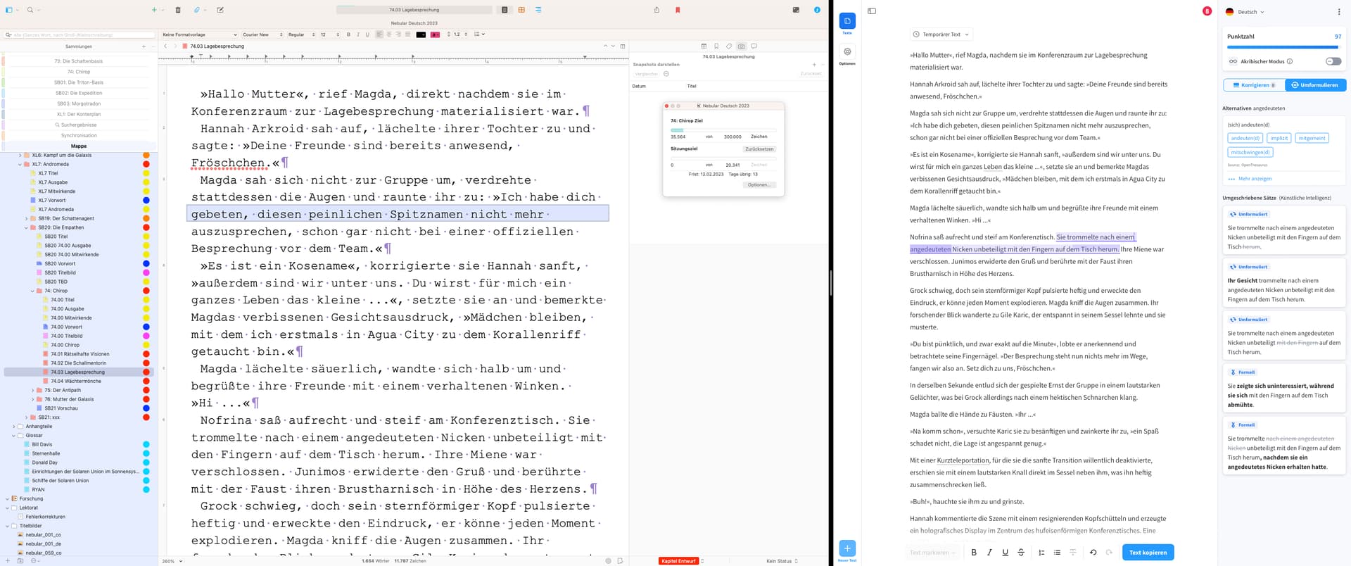Since I write a lot of texts on the Mac with Scrivener, and write a whole series of novels, the topic of spell and grammar checking came up again and again. Of course, you can use the Mac’s spell checker, but it is only reasonably functional for English-speaking users. Apple has long neglected other languages, which is why I have helped myself. Instead of painstakingly teaching the spelling to the system, I have long relied on collaboration with other apps and tools.