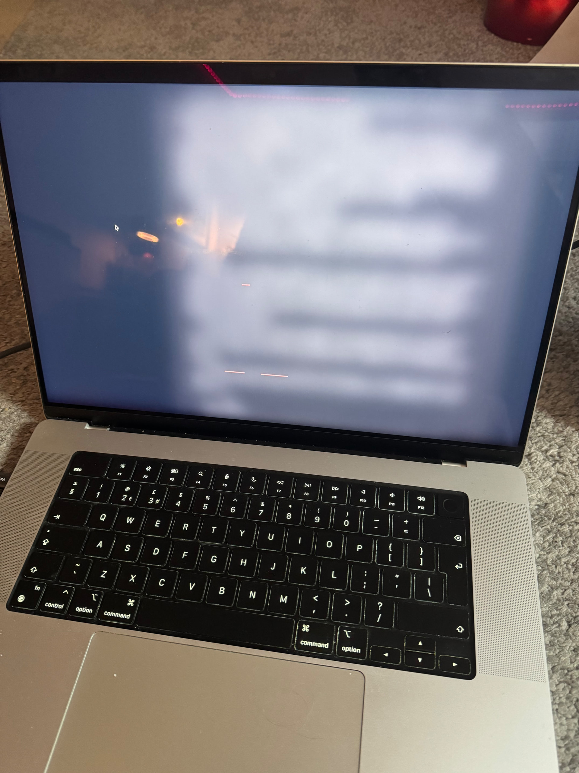 Work just bought me an external 2.5k panel that fits in my bag. First time I’ve noticed this glitch. It was okay again this morning.