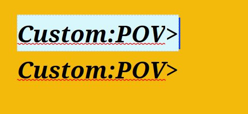 The text is “Custom:POV>”. This is a test to see about the “V>” visual bug.