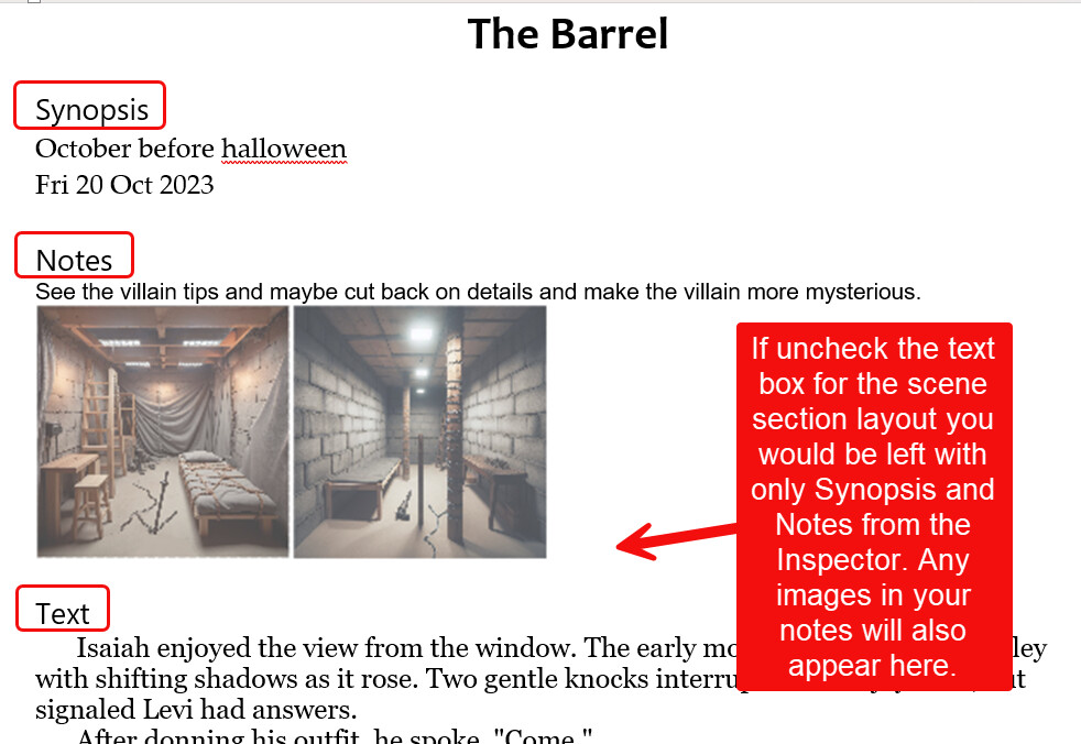 You can have a synopsis or notes added to the Section layout for your scenes or chapters as well when you compile. The image below shows a preview of what it could look like. you could easily uncheck the text and only keep the synopis or scene notes in the compile output with a few simple clicks.