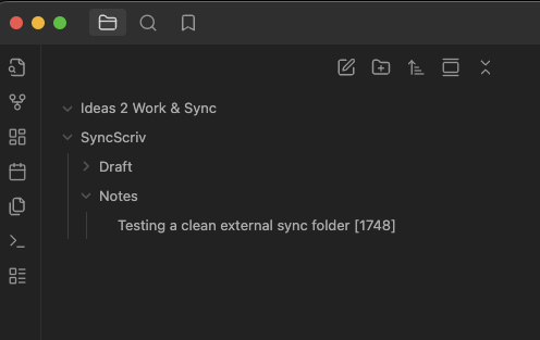 When I test the “sync with external folder” now the UI still shows it going through number 1-1747, and the single document that I’m testing with external sync is assigned the number [1748] by Scrivener.