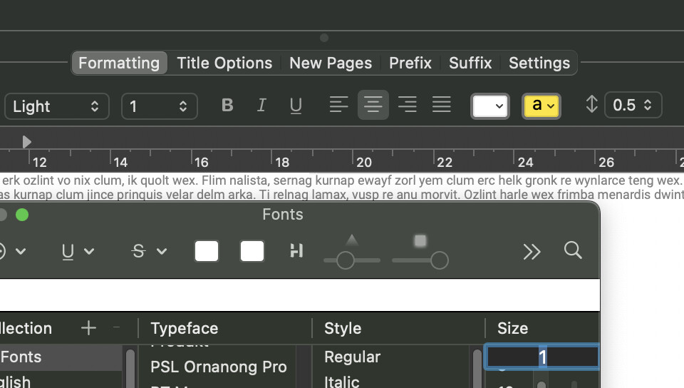 I choose Font size: 1 pt