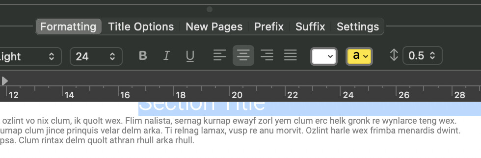 I may want different line breaks than the Binder allows. For example, I might split a long heading across two lines in the document for visual balance, while the Binder needs a single-line title for navigation.