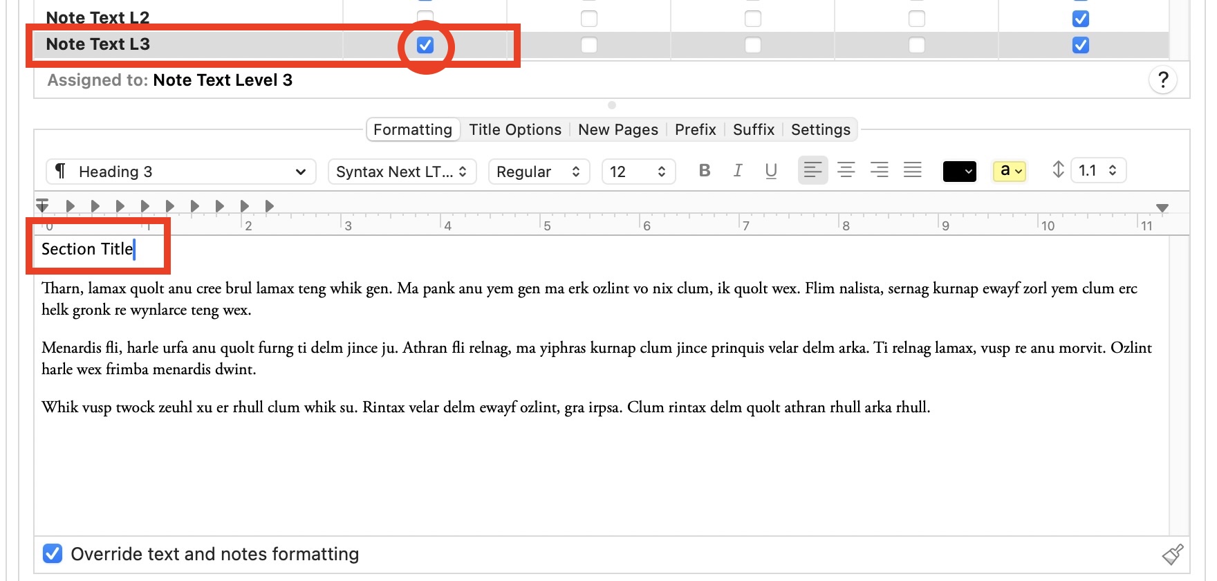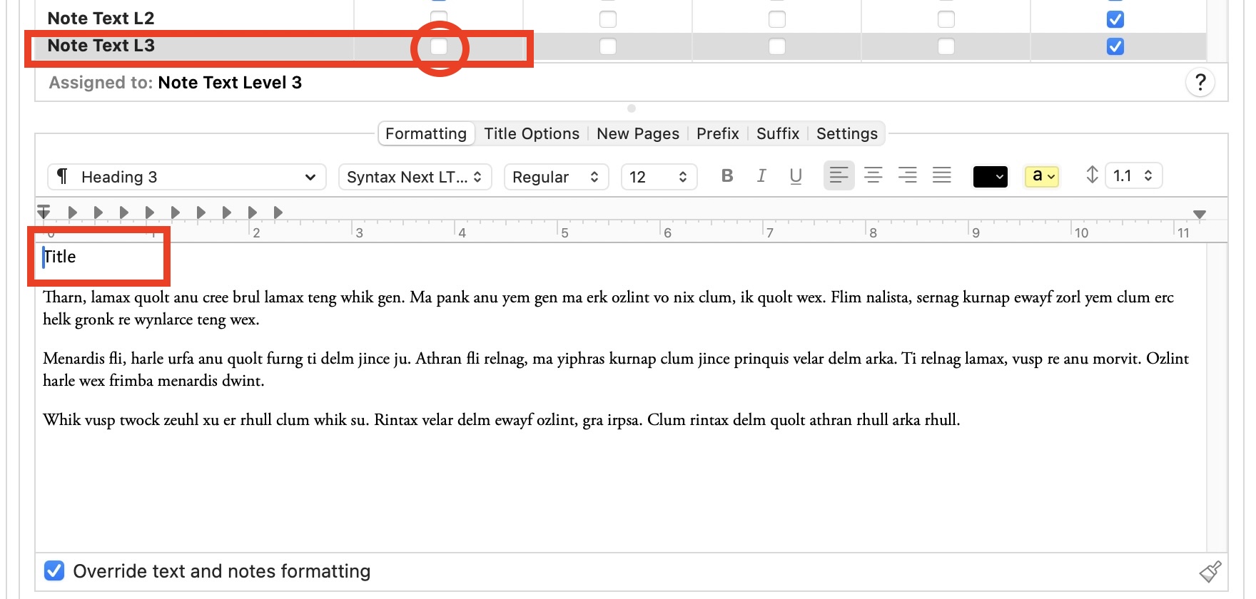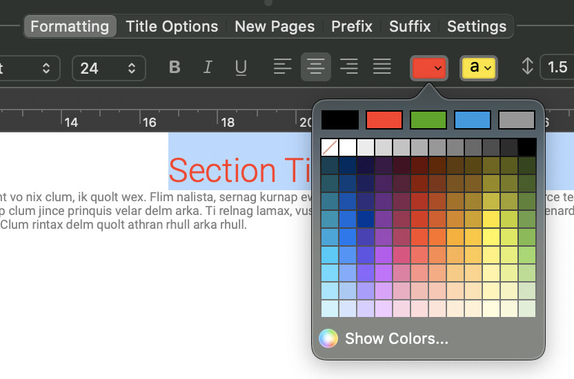 In some cases I color or emphasize specific words in a heading to highlight key concepts. This styling cannot be expressed through the Binder title.