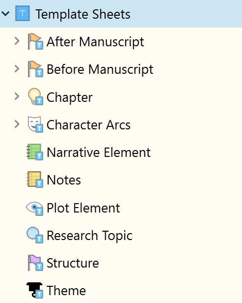 Then drag or copy and paste the Character Folder to the Template Sheets Folder. Mine is not in this example, as I have a dedicated Scrivener project for my Character Sheets to prevent bloated projects and to promote reuse without contradictory duplication of Character Sheets in a series.
