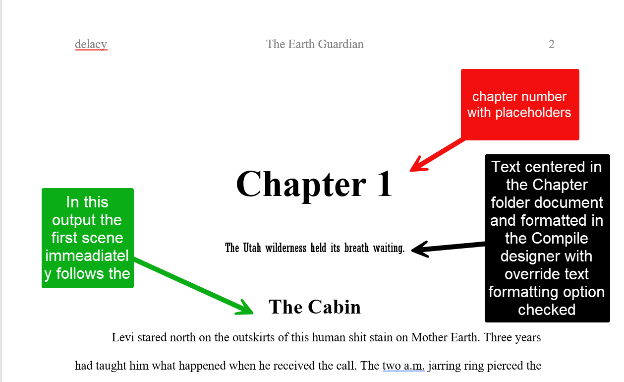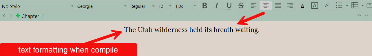Section Typeas the main text documents, but mark your epigraphs withFormat > Preserve Formatting. The epigraphs will not be affected by Compile overriding formatting generally, however, this will only affect each epigraph individually so if you decide to change the formatting, you’ll have to do it for each one. - Leave each document the same