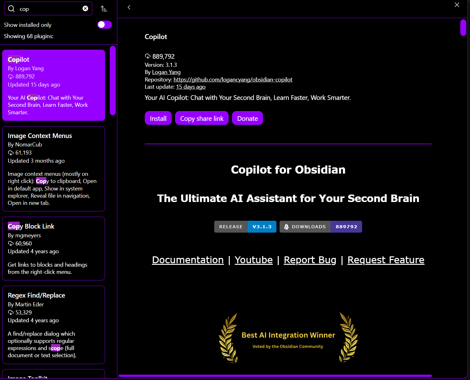 I’ve been intrigued, too, by the Copilot plugin, which uses AI to look at your vault and call up pretty much anything you can think of. BTW, the word “Copilot” has nothing to do with Microsoft Copilot; rather, the two share a name but are completely separate projects. If you’re using Obsidian’s Copilot plugin, you’re not interacting with Microsoft Copilot, but with whatever model the plugin developer wired up behind the scenes like OpenAI’s GPT or similar.