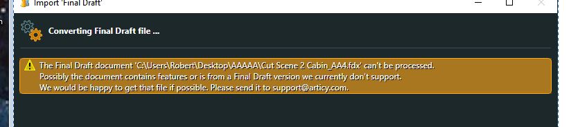I just tried scrivener 3 today I export in fdx just fine but and i can not get articy draft to import it.