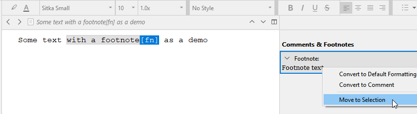 By the way: I was never fond of the “selected text” footnote, as it makes it real hard to edit that text afterwards…