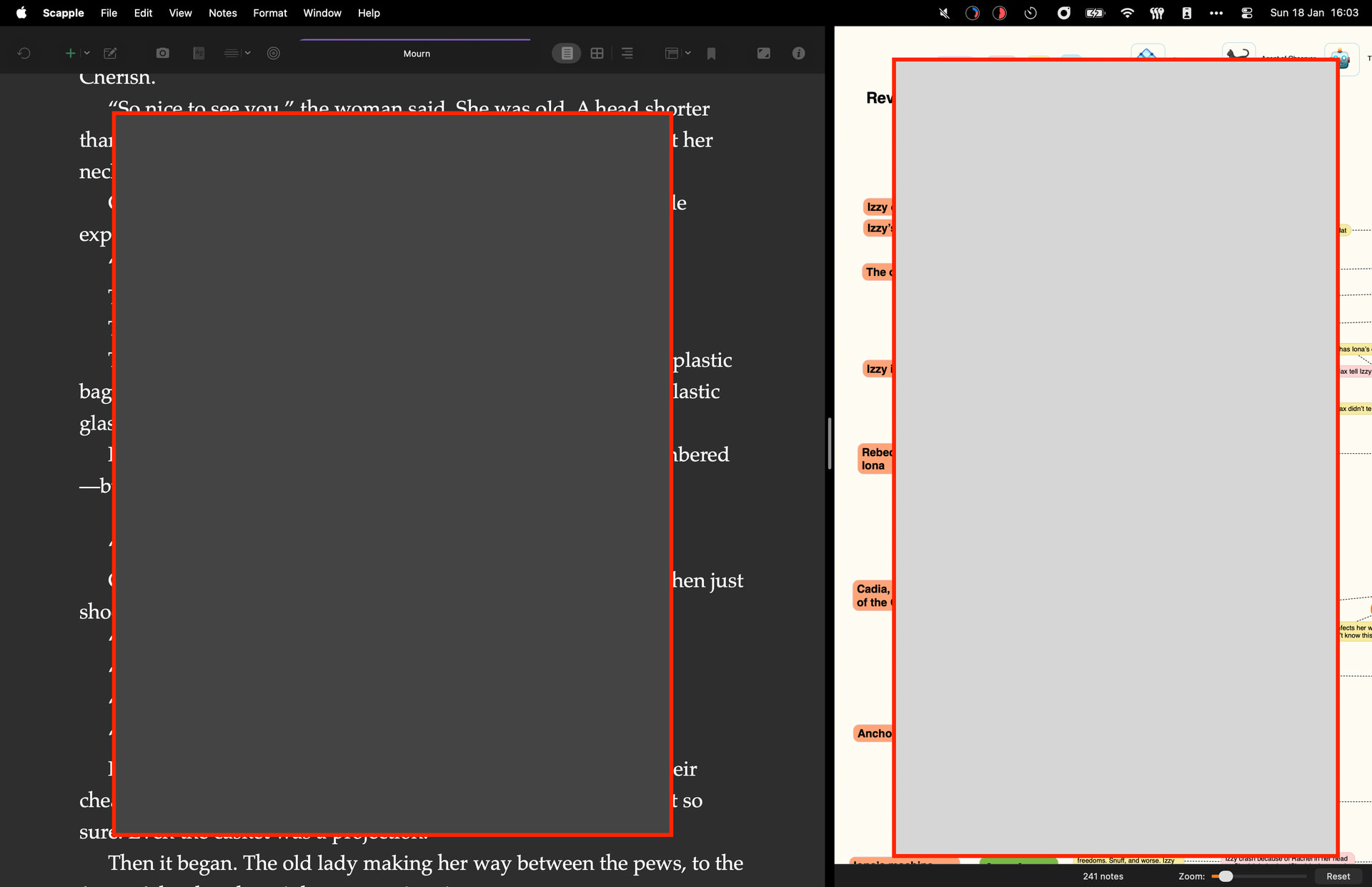 I track my story and connections with scapple, and of course, I imported them to Scrivener. And here’s the point: I have a large 4k Monitor, I have all the desktop space I could wish for. So, I started to use split screen, and its amazing. But i really wish for an better integration of Scrapple into Scrivener itself, not just showing me a link, that opens Scapple in a different window. It would be great if I could actually USE Scapple, or the scapple project, within the spit screen, see it there, change the connections or move stuff around. Maybe even store diffenent “story-time-settings” (okay, that could be done with copy&paste projects).