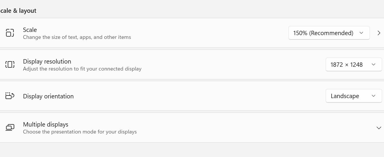 Here you can see my display resolution of 1920 x 1080 and scaling of 100%.