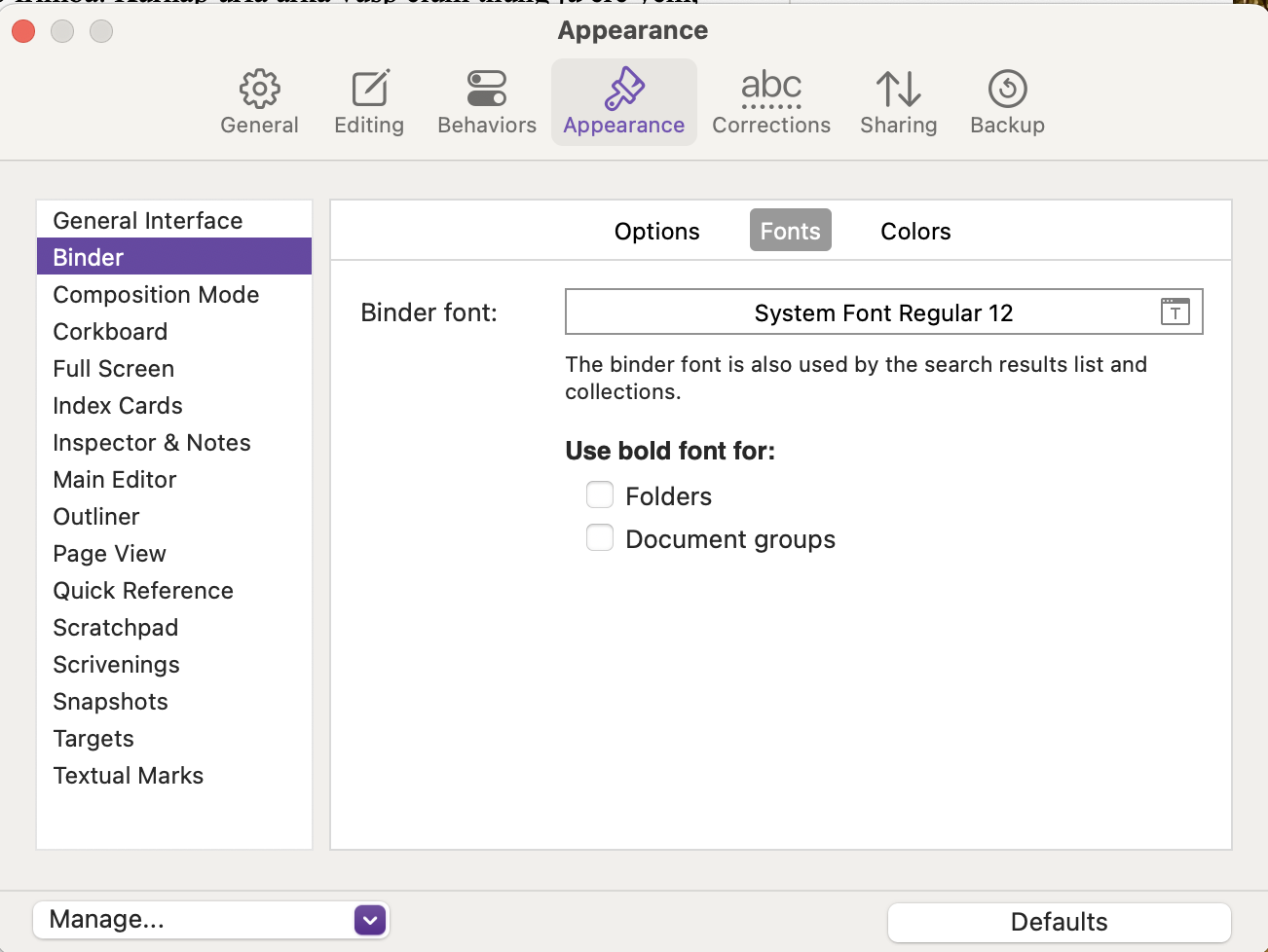 as my settings since I moved from V1 to the V3’s beta, without anything but folders having their title bold in the binder, that I ever noticed. (I use Scrivener daily, almost 365/365)