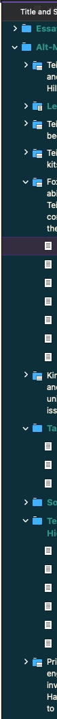 The real reason you’re looking for though is because they are different kinds of software, and to a very limited degree in the case of programs like Ulysses/Obsidian, different kinds of outliners (it’s a bit of a stretch to call them one, but the definition is broad, we’ll grant you it, even though it’s a bit like calling an email client or a file manager an outliner). To clear things up a bit, you are not pitting the same kinds of software together, you are saying one whole type of software is modern while the other isn’t. This is a bolder position to take, as single-pane folding outlines quite likely antiquate multi-pane tree view outliners (like Scrivener). Given the increased sophistication requirement of displaying dynamic data in two areas of the screen rather than one area, it’s more likely folding is the old way of doing things. But this is all a bit silly, to be clear, as we’re talking about concepts that go back to the 1970s, here. Calling either of these approaches more modern than the other, or to say one is “showing its age”, at 49 years old, while the 52 year old one is fresh and modern, is to maybe use language in a strange, somewhat squirmy way.