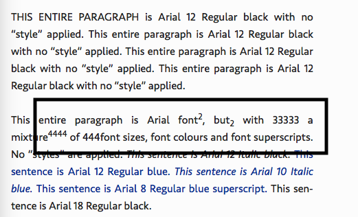You’ve taught me that I need to set up styles in Editor for anything that (in my earlier example) is not Arial 12. I still don’t really understand why some font attributes (colour, italics) carry thru just fine to ePub 3 without having to set up a specific style, whereas other font attributes (font size, superscript) don’t. But that’s ok. I now know how to use styles to make it work.