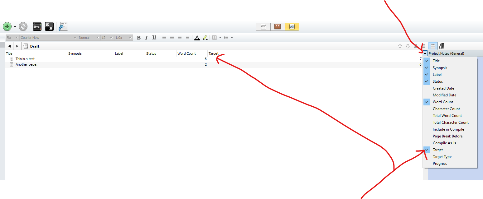 For instance, if I have a 3 Act Structure and want a Total Target (word count) for each Act (and all subfolders), how/where can I set the target so I can see it in the Outline?