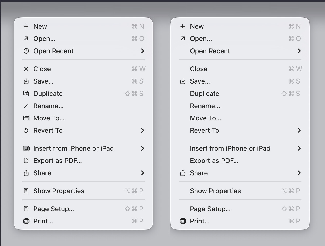 . I see in earlier examples how selective icons helps you scan the menu, but for my brain, it also makes the non-icon items invisible. For now, it’s helping me read menus more carefully and notice things I hadn’t before. As someone who has designed plenty of things with icons, though, I do sympathize with how stupid selecting them for absolutely everything can be.