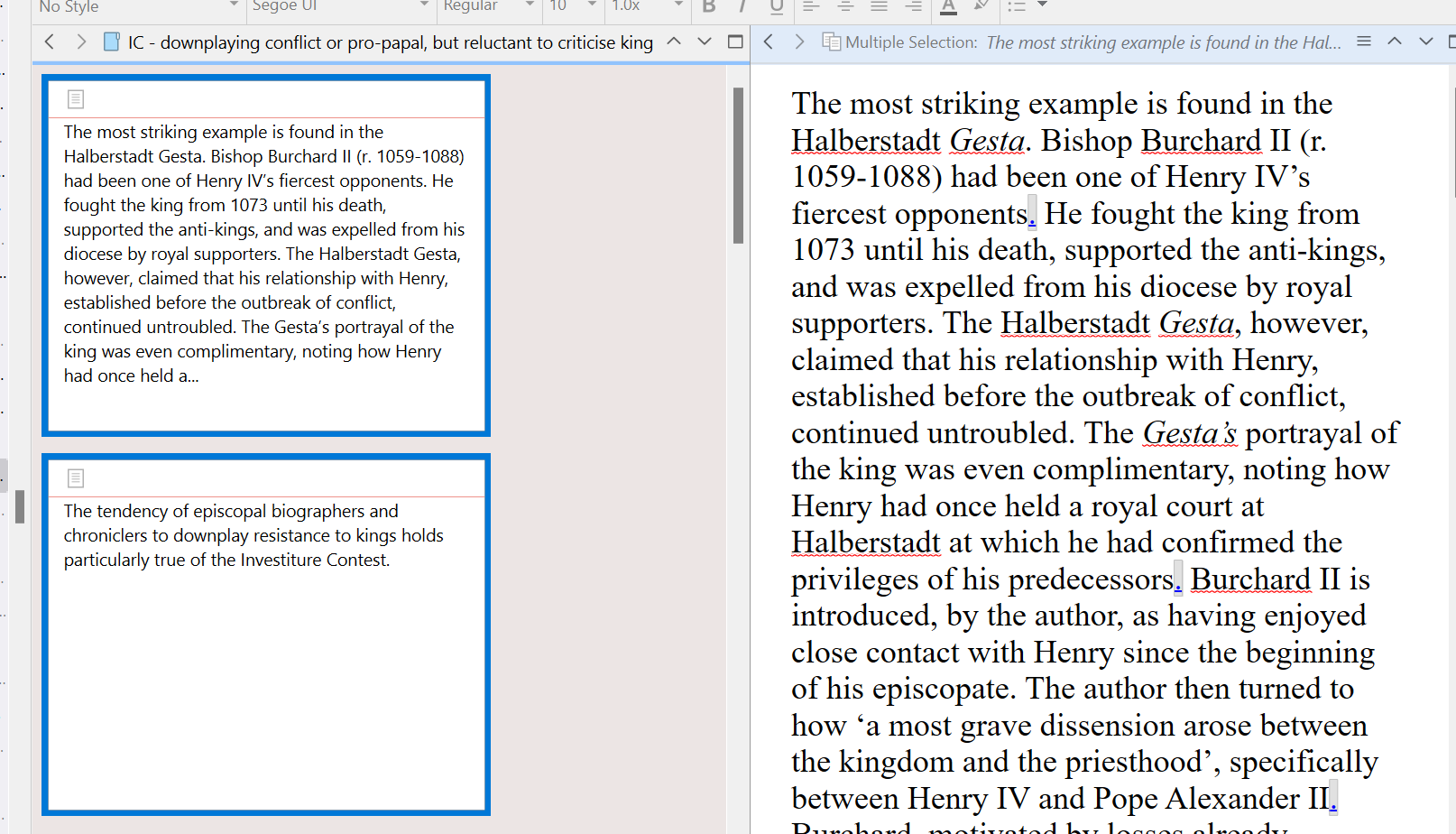 So to return to what I was saying: if you want more text, then select however much text helps you identify this section, from the other sections, and use the Documents ▸ Auto-Fill ▸ Set Synopsis from Selection menu command.