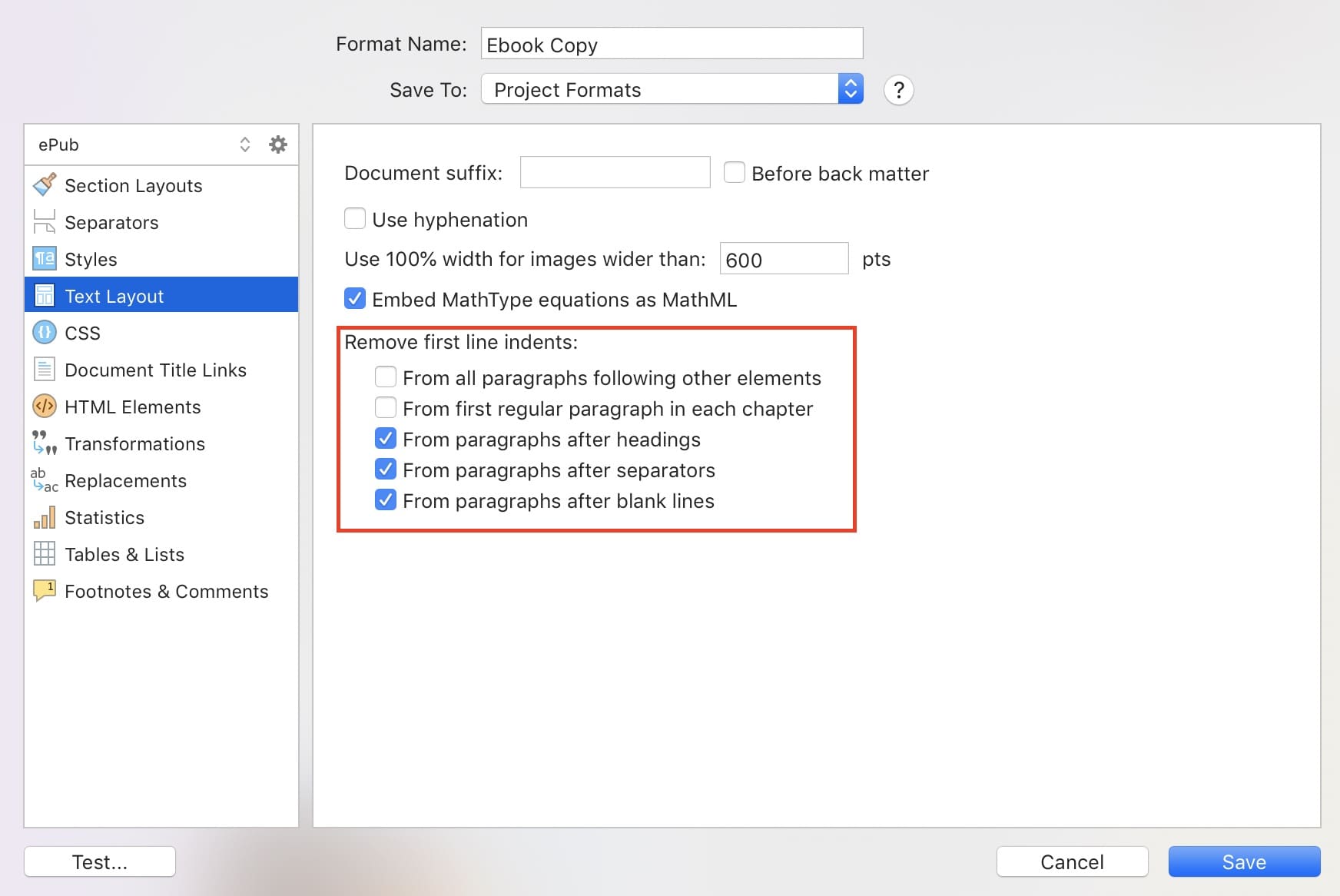 thanks, but doesn’t really help. from what I understand, it’s just a kindle formatting problem, but then i look at other books i have on the phone (not created by me) and the indents are there. seems like then all indents would be taken out, or those books do something different when compiling.
