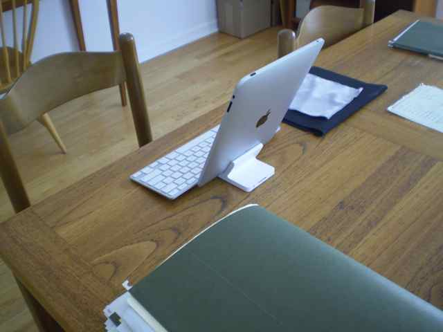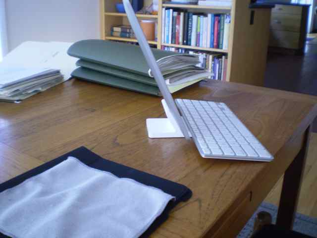 We have a beautiful and hitherto much-loved iMac. To be quite frank, now that I have used an iPad, I only sit at the thing when I absolutely have to. The iPad so far is more than I could have dreamed of as a reading and research tool. The kind of reading that used to keep me chained to my desk, lifting my neck and my wrists higher than I care to, is now greatly minimized, since I can grab a PDF or web page and read it where and whenever I please.