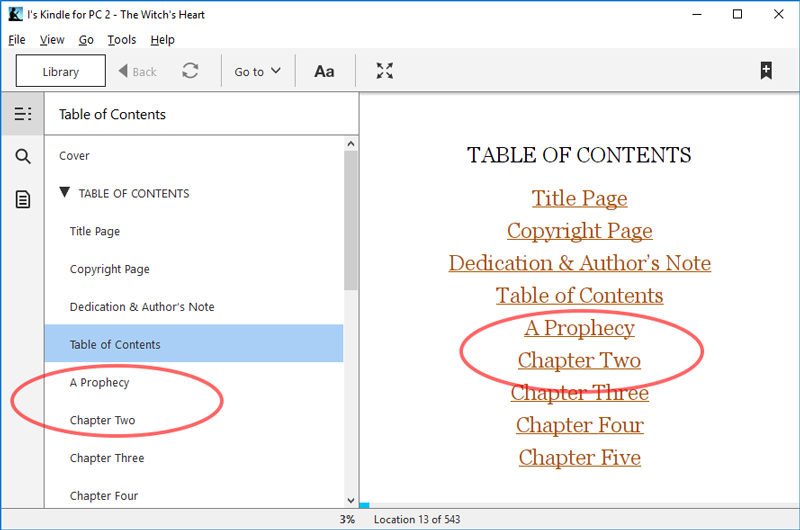 I created a page for my ToC and linked each text link to the correct chapter for my first story.
