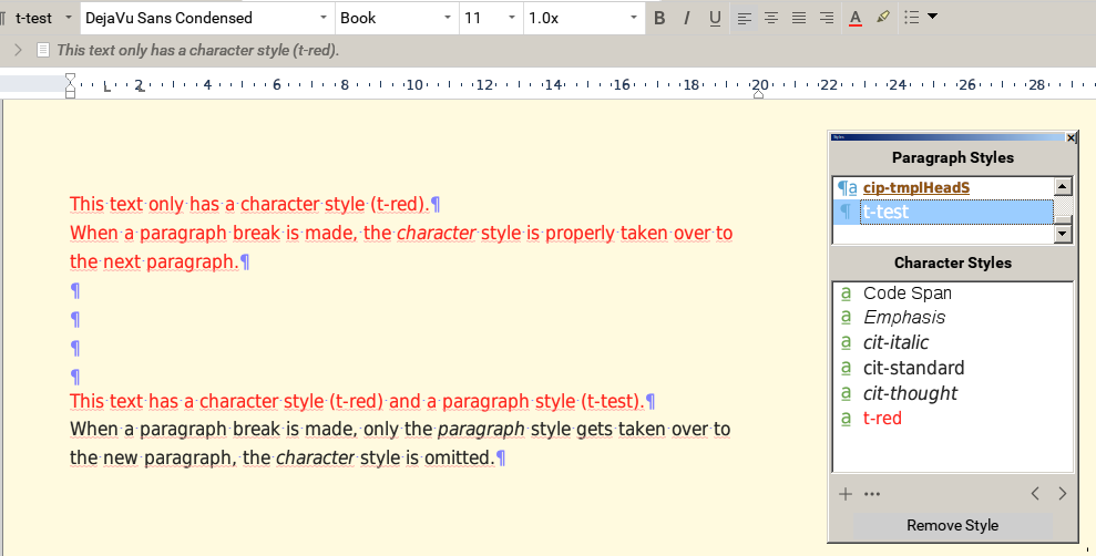 Btw the behaviour I am expecting is exactly the one which other applications being capable of dealing with paragraph and character styles show, including Word, Libre and OpenOffice.