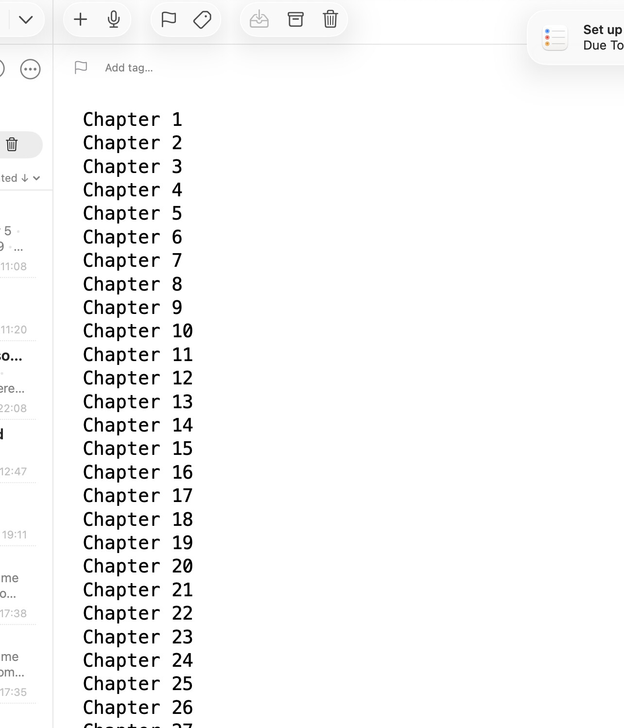 How do I make a document that I can print that lists all the Titles of my Chapters I want to send them to a friend