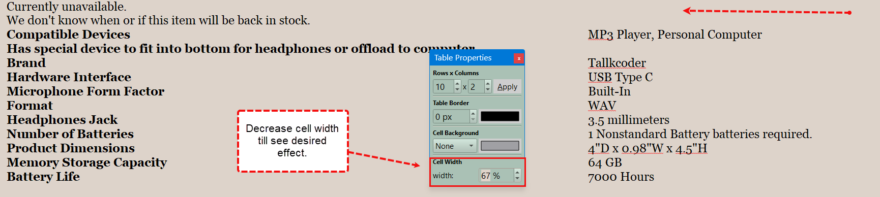 The formatting wonkiness is a deeper problem and related to a larger philosophy from what I read. I get it and understand the differences between tables with fixed column widths and widths that are percentages. I also understand that if I wanted more complex tables, I should do them elsewhere - I do (see paste issue above ). That does not mean that things are static and wonderful. I have already written about that and it’s now the subject for a different wish list forum (rightly so). I will offer one last tidbit on that. Someone suggested that having column widths (percentage or fixed) that can be adjusted via the column edges (visually) was not viable. Understand, all I am suggesting is a visual control to set those values. IMO it would be more intuitive (and elegant) and faster to manipulate a control vs typing values into a control.