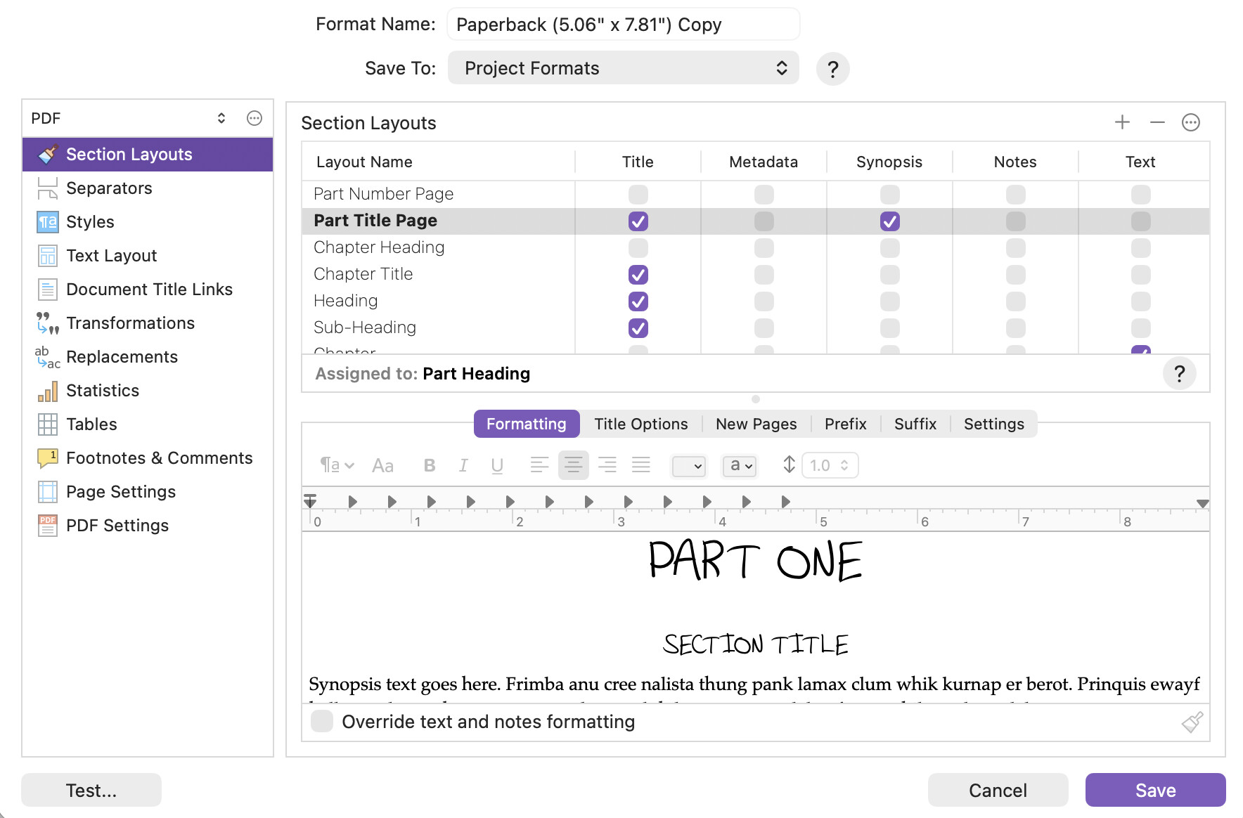 Hi, I am trying to include an image at the bottom of the part title page. I have added the image to the synopsis of the folder, and changed my project compile settings to include the synopsis when compiling. However the image doesn’t show up. Please see screenshots.
