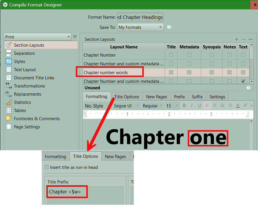 welcome am adding some working section layouts settings, compile format designs to a page on Scrivener. Compiling is the hardest thing to get a hang of. Like calculus in HS all a mess till it clicks.