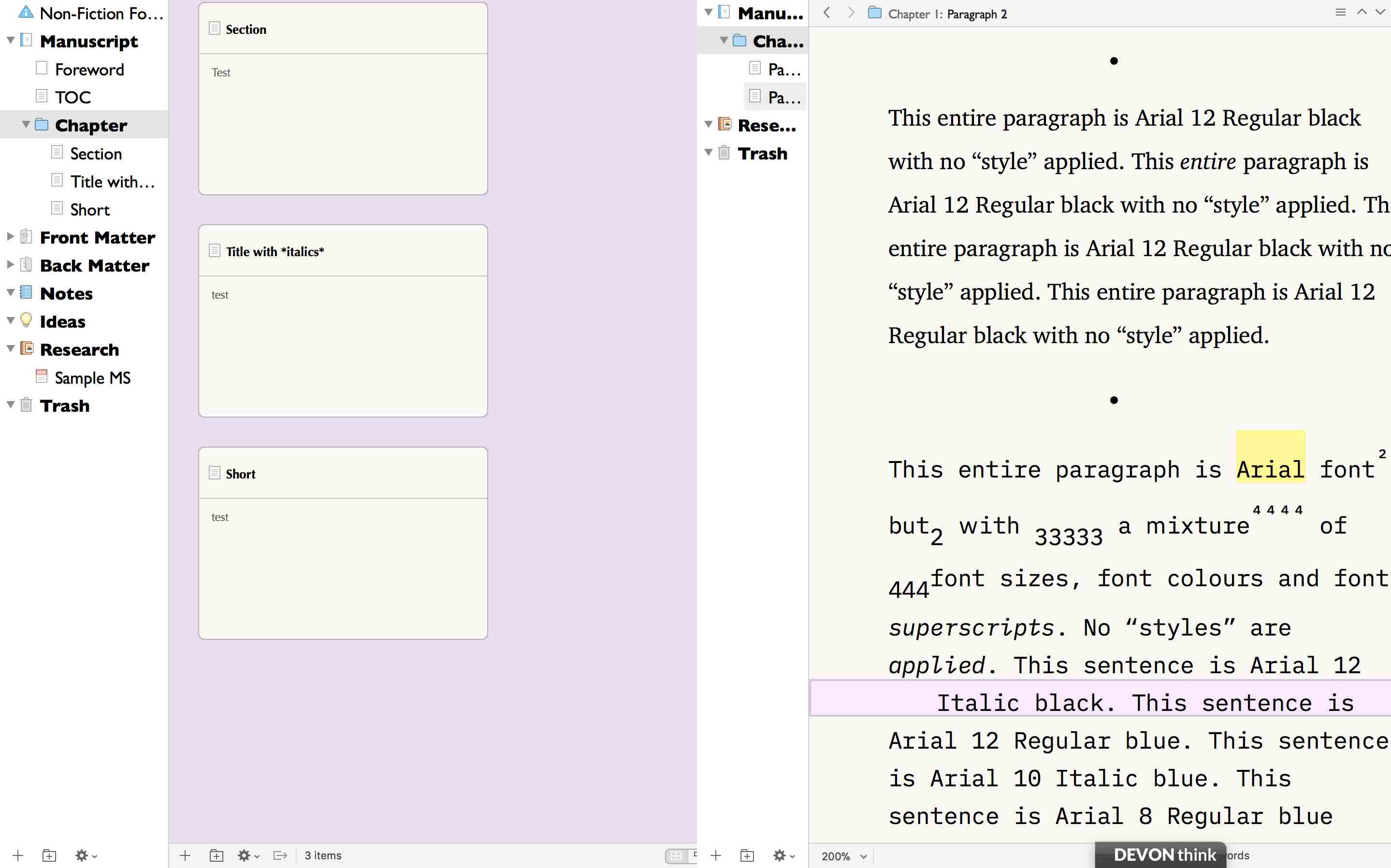 This is a screen shot of my MacBook 12" with two Scrivener projects and their binders side by side.