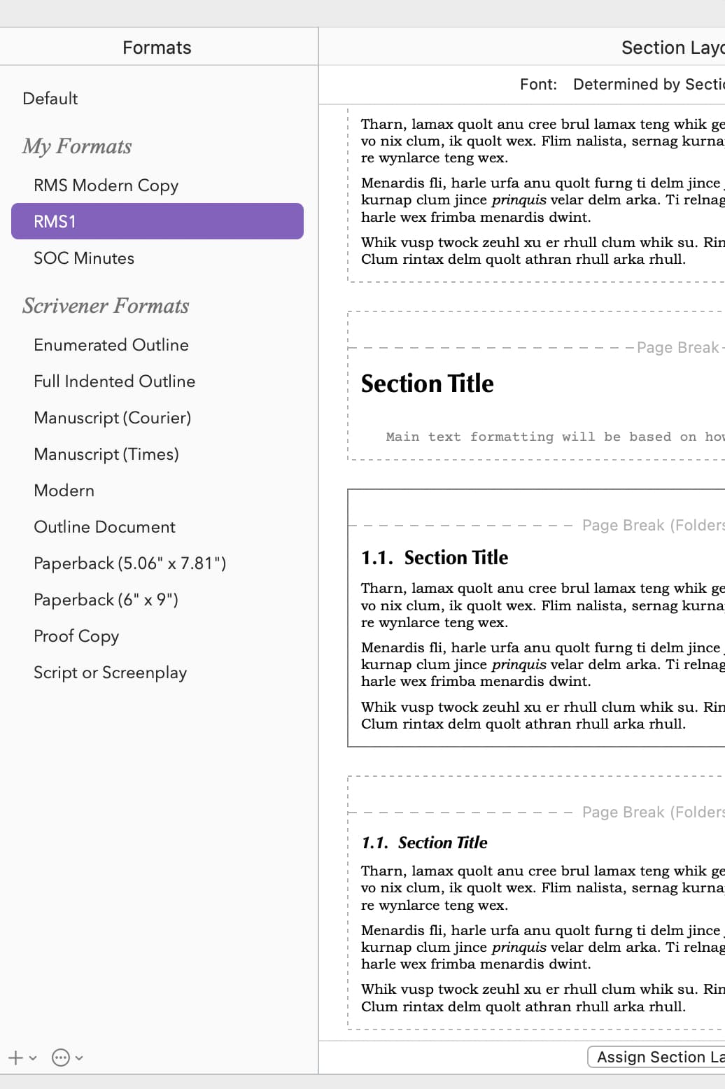 All I want is for the output when compiled to look like the scrivener window. But the ‘Front Matter’ drop-down default and the ‘N/A’ one change my 12-point type to something like 18-point. There are no other valid choices, and I can’t modify these ones.