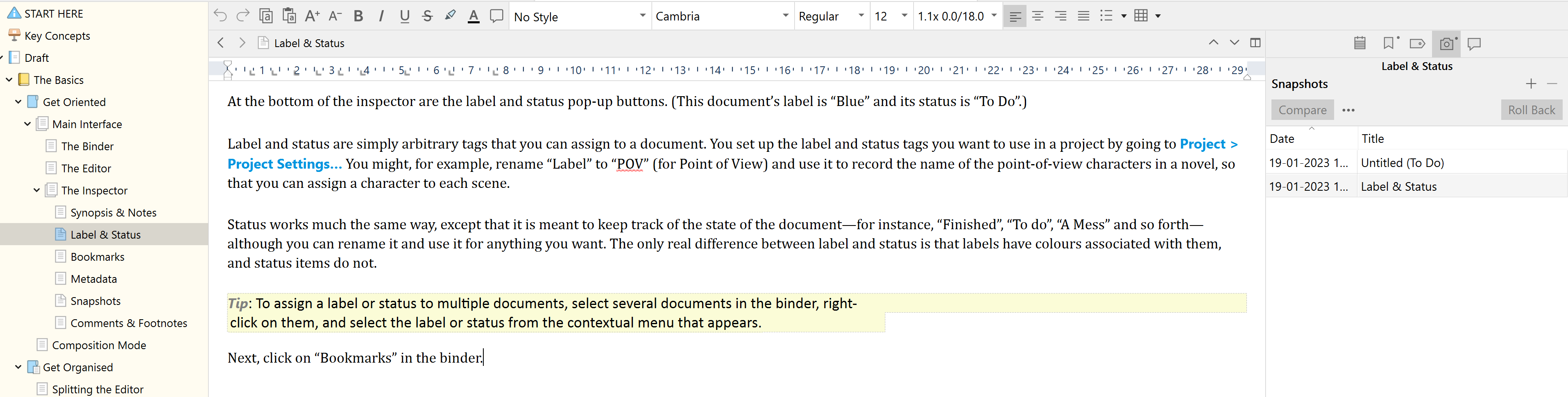 When rolling back a snapshot the main editor’s left/right margins are being set to zero px just for that snapshot. Other scenes/editor frames are fine. The behaviour is (annoyingly) consistent, reproducible and still persists when flipping into another scene using a binder selection then clicking back.