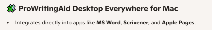 Thanks, Vincent. I’ve taken a look at your suggestions. ProWritingAid seems to be an alternative to Scrivener, is that right? I’m not keen to ditch Scriv as I’ve been using it for nearly 15 years and like it. And from what I’ve read about Antidote I would have to use it as I would Word—import the text, find the errors there and fix them individually in Scriv. From what I’ve read, I’m not sure either program would be a helpful workaround. Am I missing something?