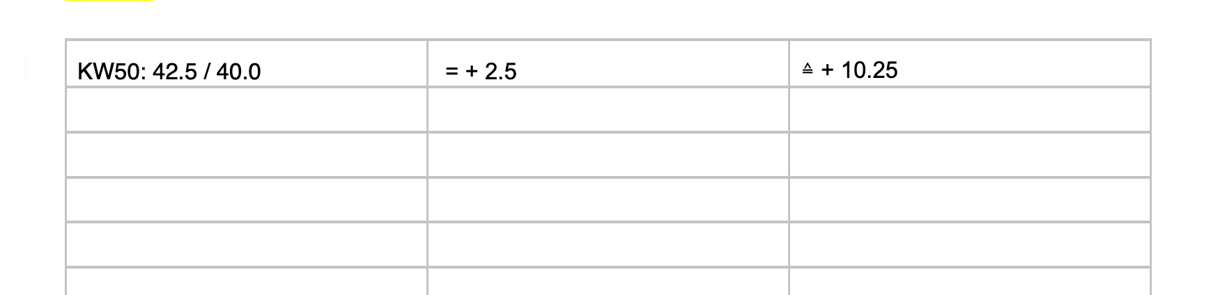 First column: hours worked in that particular week, second column: +/- hours for that week, third column: total overtime for the year.