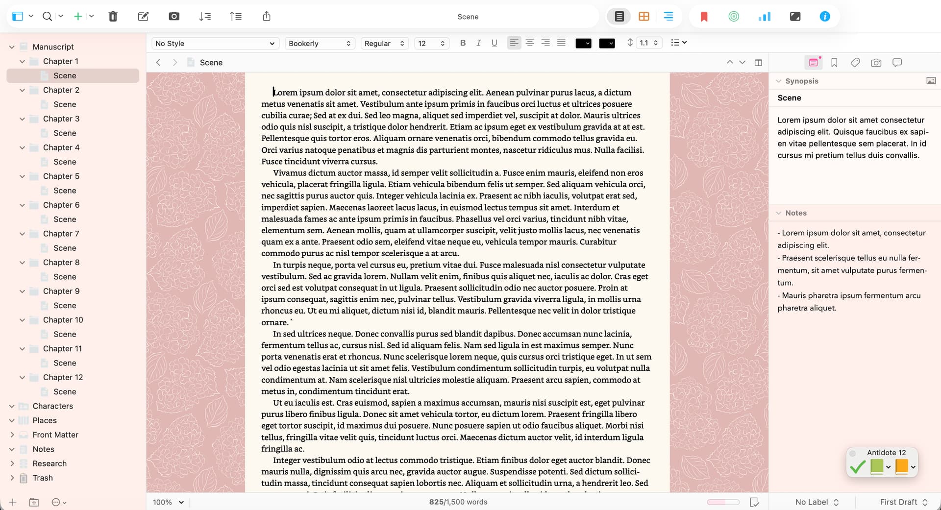 It is interesting to me that the exact same file looks much better in corkboard than main editor