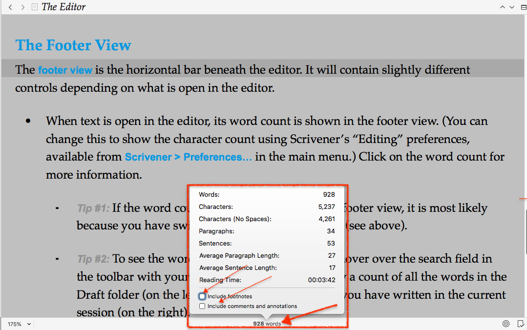 For some reason the word count in the footer has just disappaered. I’m not sure if I’ve edited some setting but this is what the footer now looks like.