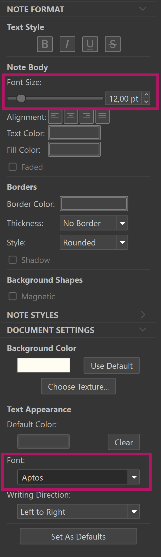 Is there a way to change the font on a single note and not change the font on all other notes?
