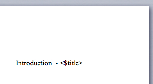 At the top of each compiled page, I would like the title of the document that is printed on that page to appear. To that end, I entered the placeholder tag <$title> in one of the header boxes in the compile dialogue.