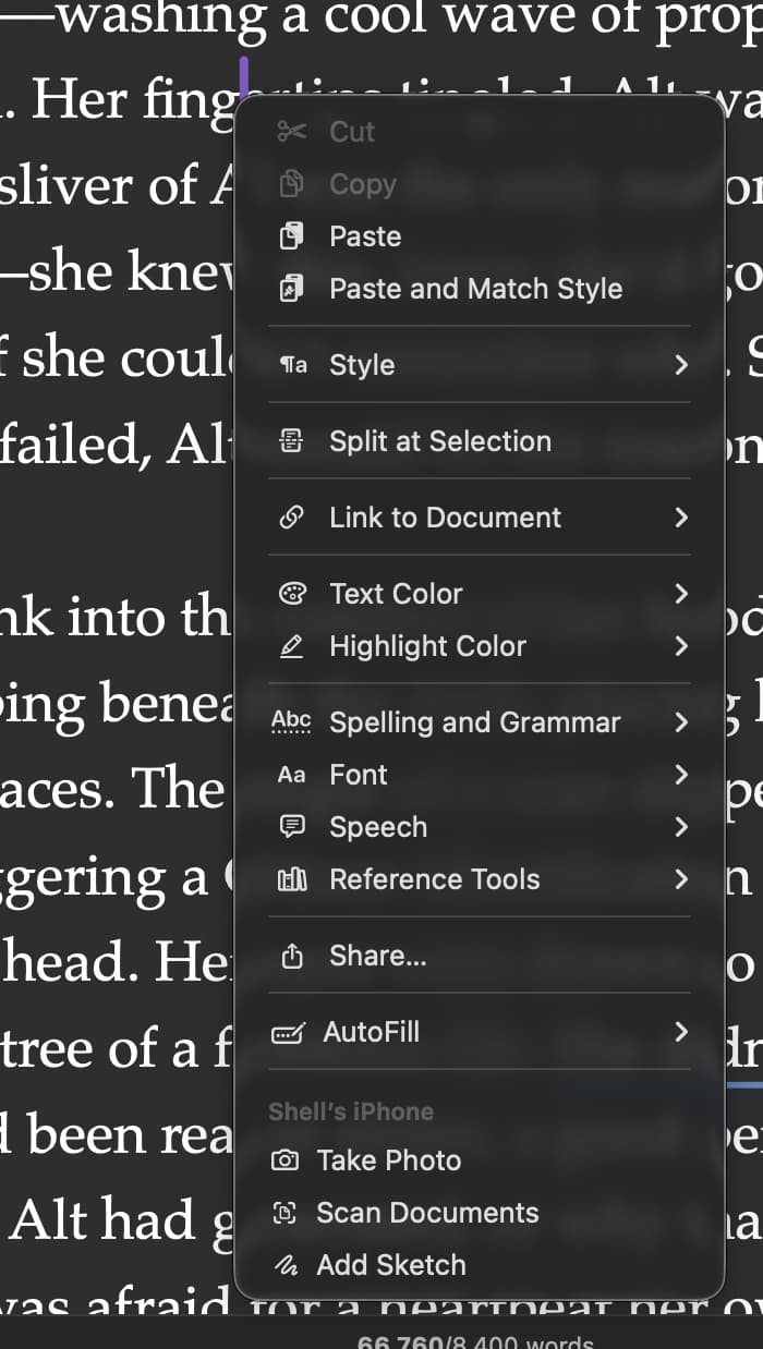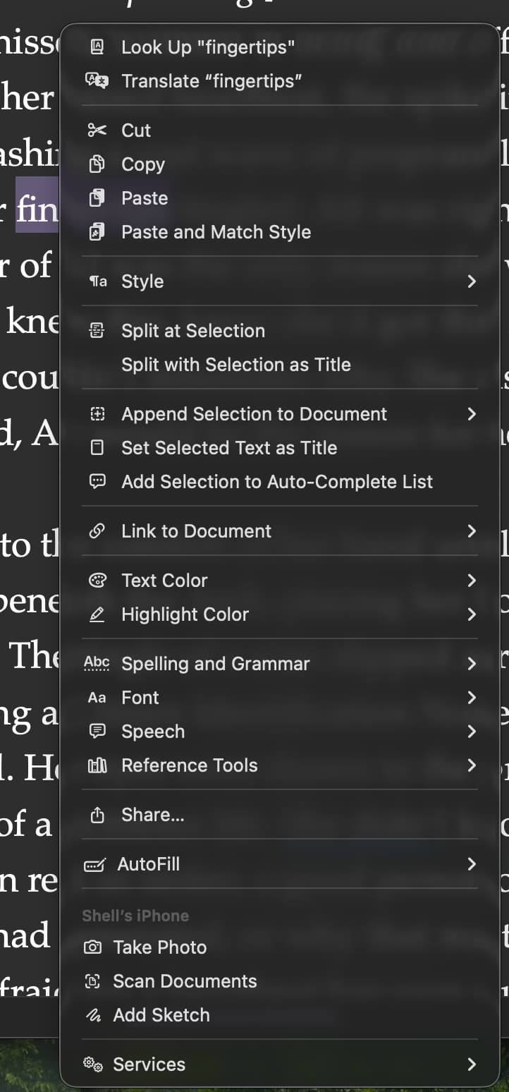 Thanks! Okay, so that suggests there is something somewhere in Scrivener thatās the trigger⦠but not the contextual menu itself. Argh!