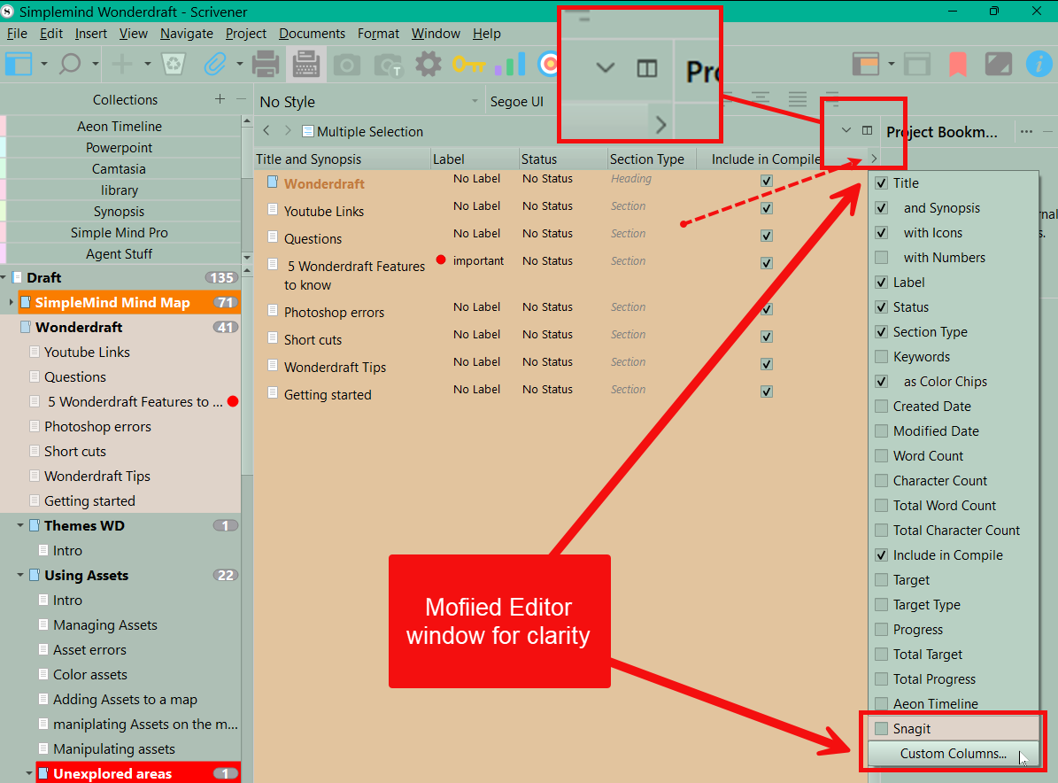 The critical thing is it is not a screenshot of an editor page in any of the manuscripts I have created in Scrivener. Itâs a screenshot of an existing Literature & Latte video instructing us how to use this little menu.
