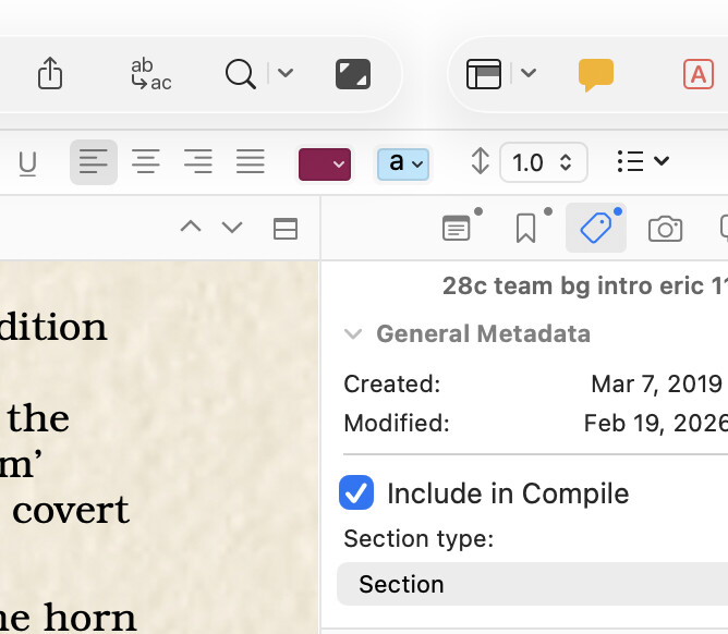 Itâs there in Tahoe 26.3 and Scrivener 3.5.2: