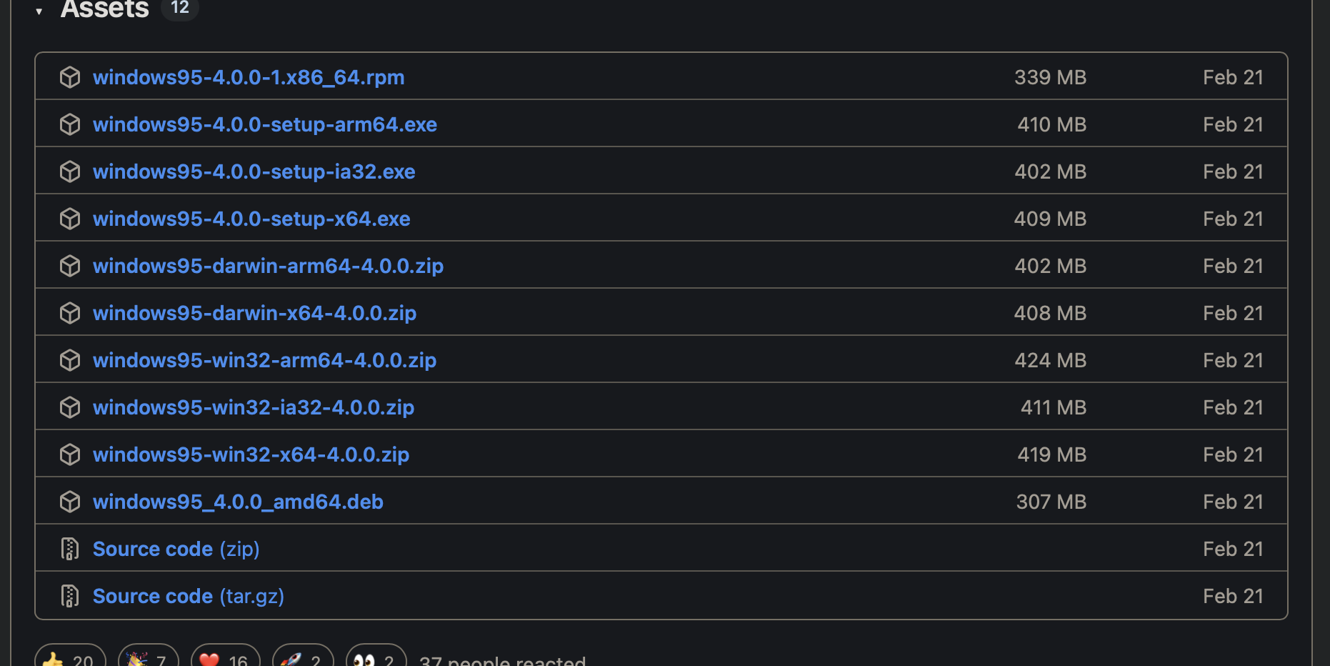 Just go here: Releases · felixrieseberg/windows95 · GitHub