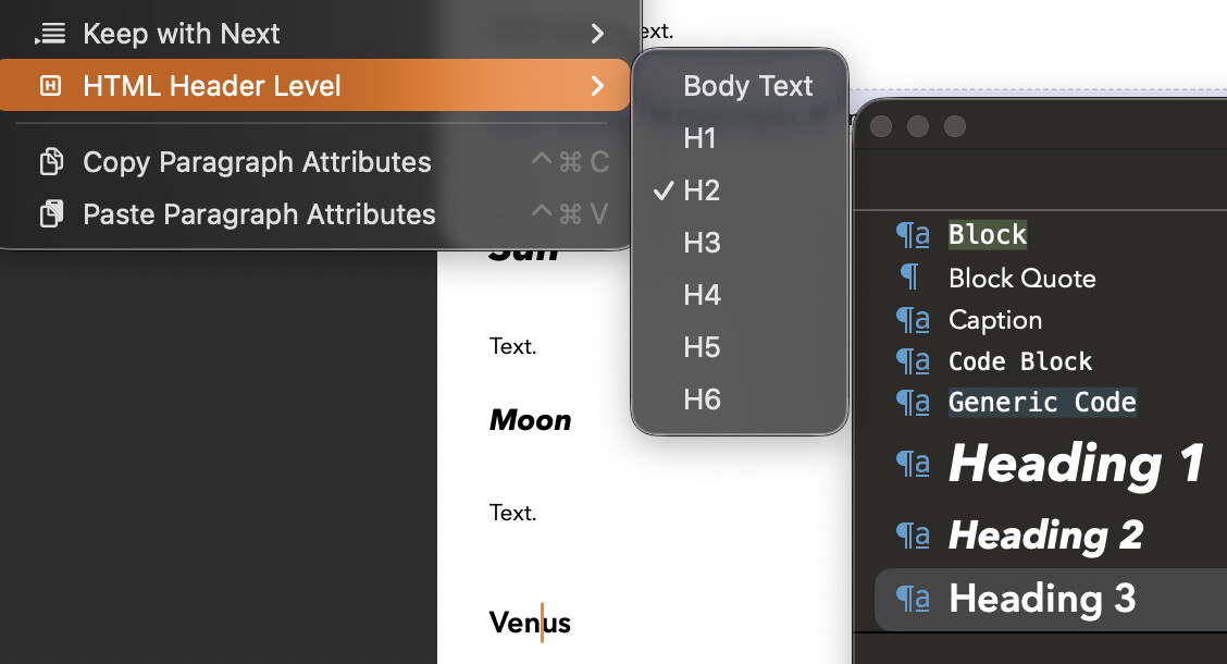 This workaround doesn’t function for Headings, though. Headings 1 and 2 are both properly applied in markdown, but Heading 3 is not. The markdown is applied to the custom heading (even with the space added).